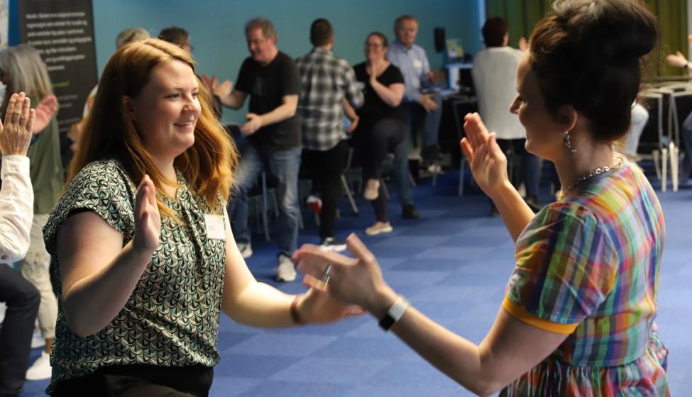 Et morsomt og energigivende fellesverksted om rytmikk med Tone Ophus avsluttet fredagens program. Her ble det mye latter da deltakerne fikk prøve seg på mange, ganske avanserte øvelser med sang, koordinasjon, bevegelse og rytmikk. Øvelsene var hentet fra den nye boken hennes, «Move it», som gis ut i løpet av få dager og som kan kjøpes fra forlaget Norsk Noteservice.