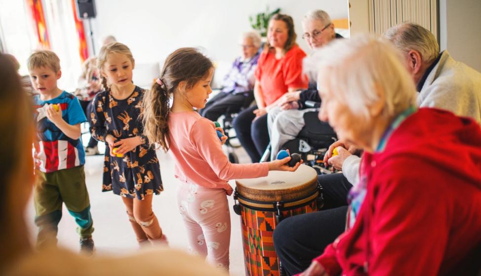 Mange eldre har stor glede av å møte barna med deres spontanitet og lek, og barna får møte de eldre som har opplevd et langt liv i en annen tid. Å få en felles opplevelse gjennom sang, kan knytte generasjonene nærmere hverandre og gi dem en større forståelse og ikke minst interesse for hverandres hverdag og erfaringer.